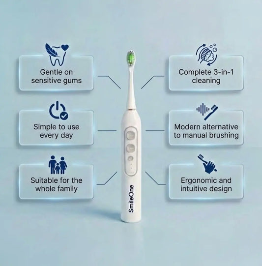 My son wears braces, and brushing was always a struggle, especially between the brackets. Since we bought SmileOne, his routine is much simpler and, most importantly, more effective. The brush is soft, easy to use, and really reaches those hard-to-reach areas. As a mom, it's very reassuring to know he's cleaning his teeth properly every day. I highly recommend it.